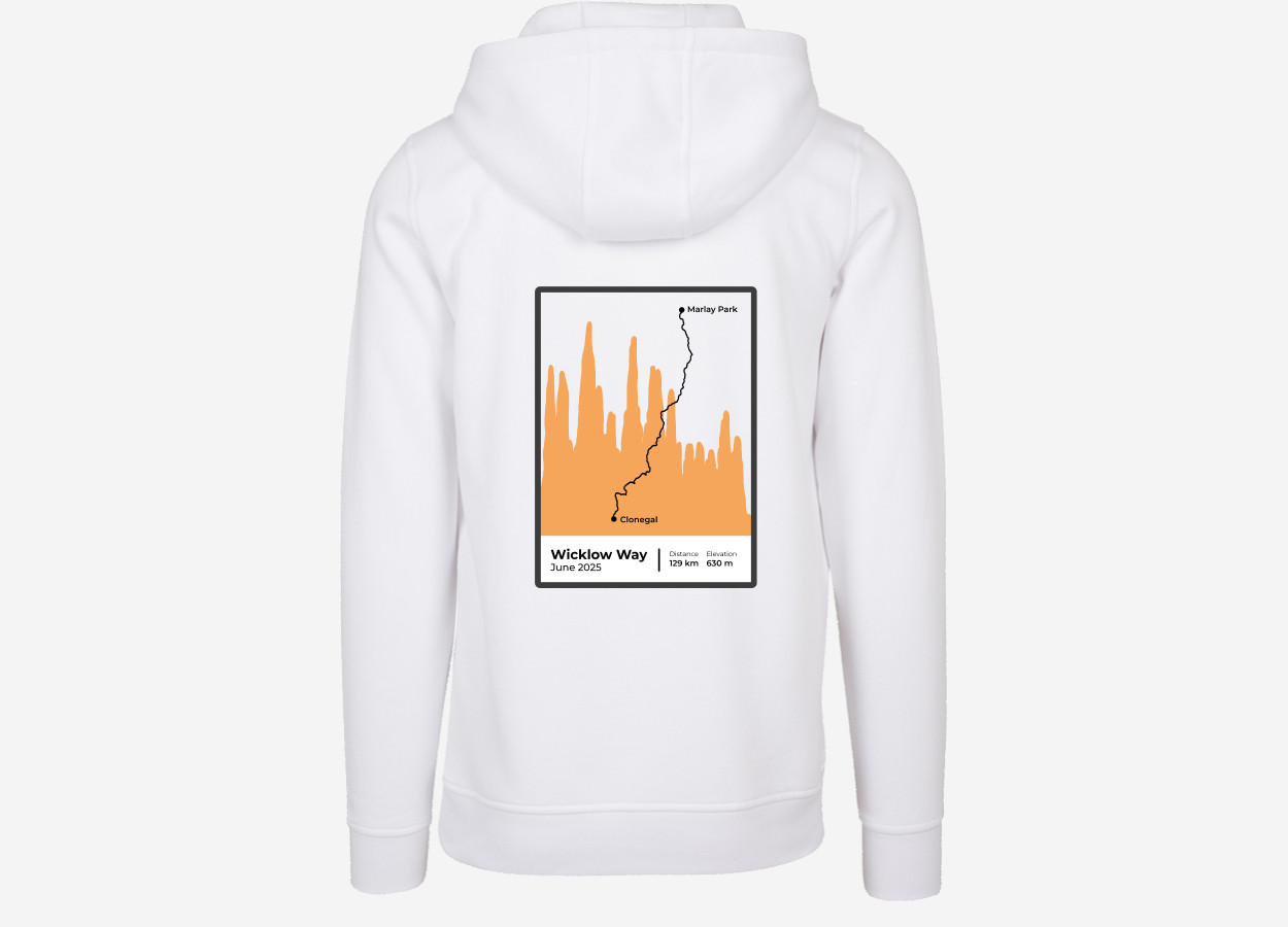 Each hoodie showcases elevation profile, trail map of your chosen UK long-distance route, and total distance. For example, the Pennine Way covers 268 miles (431 km). dd your name, race date, or favourite section of the trail. Choose from popular UK routes or request your own ultra marathon or hiking challenge for a truly bespoke garment.