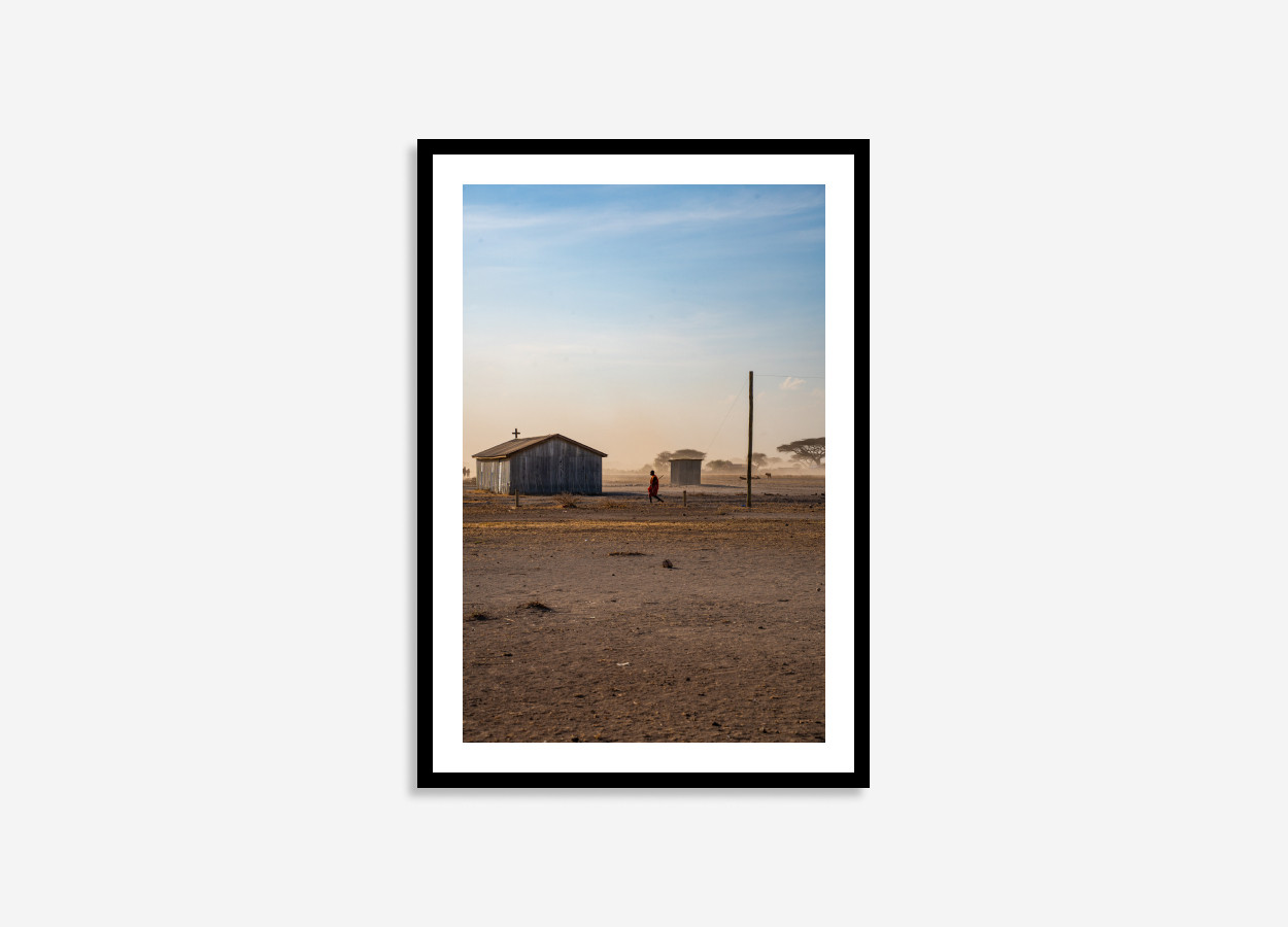 Display the serene beauty of the African countryside in your home with this rustic church wall art print. A wall art print featuring a solitary piece of rustic architecture set against a dusty landscape, this unframed wall art portrays a quiet moment during sunset. The warm hues highlight the peaceful and timeless atmosphere of a rural African landscape, making it an ideal addition to any home decor collection.
