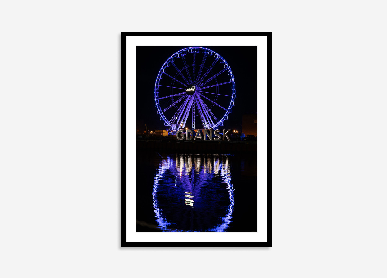 Perfect for lovers of urban nightscapes, this Amber Sky ferris wheel night photography print brings the magic of Gdansk’s historic heart into your home. The river reflection print highlights the serene yet vibrant atmosphere of Gdansk after dark, making it an ideal piece of Motlawa River night photography print for your living room or office.