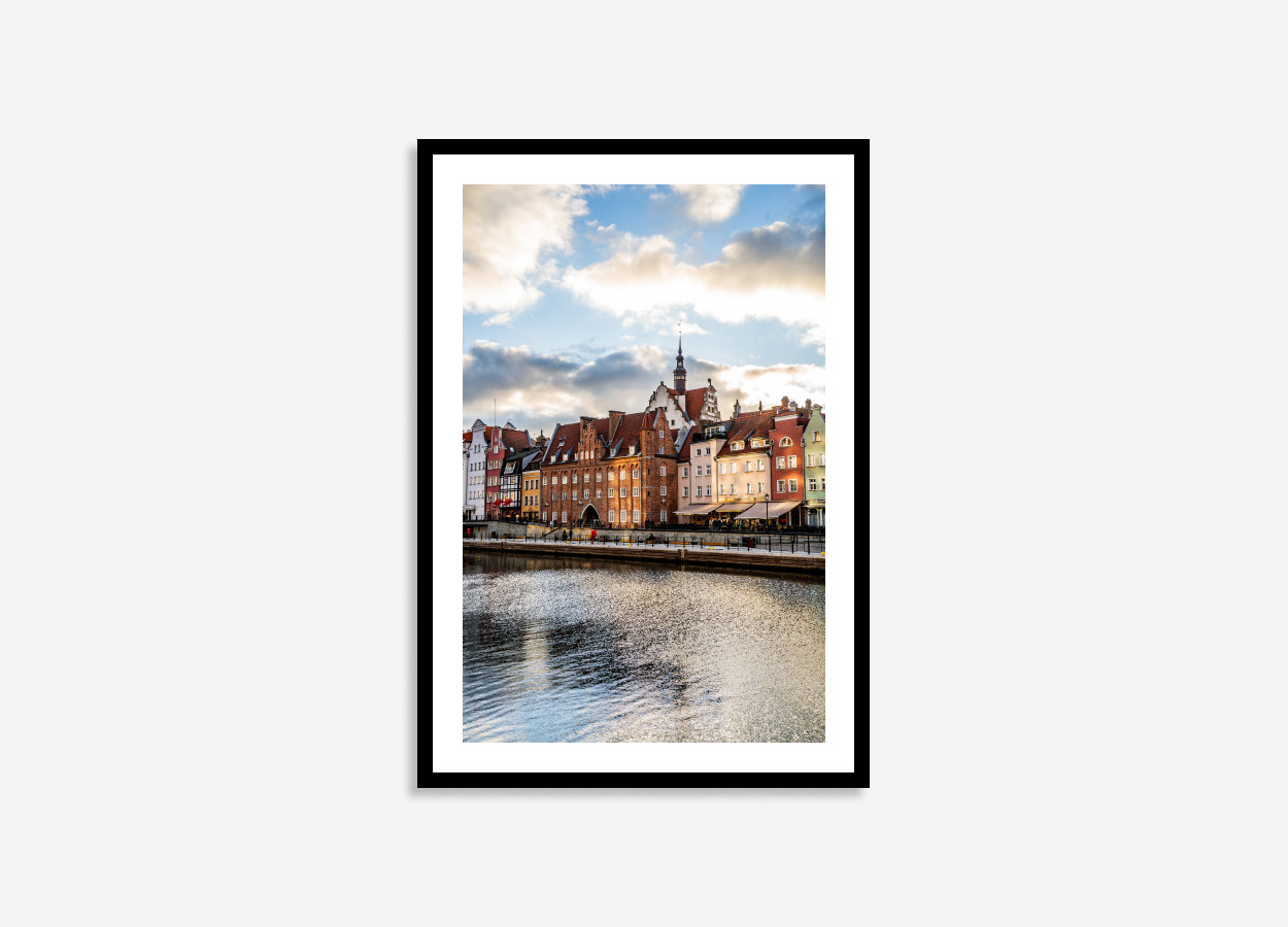 High-quality print showcasing Gdansk’s iconic Motlawa River and colorful cityscape