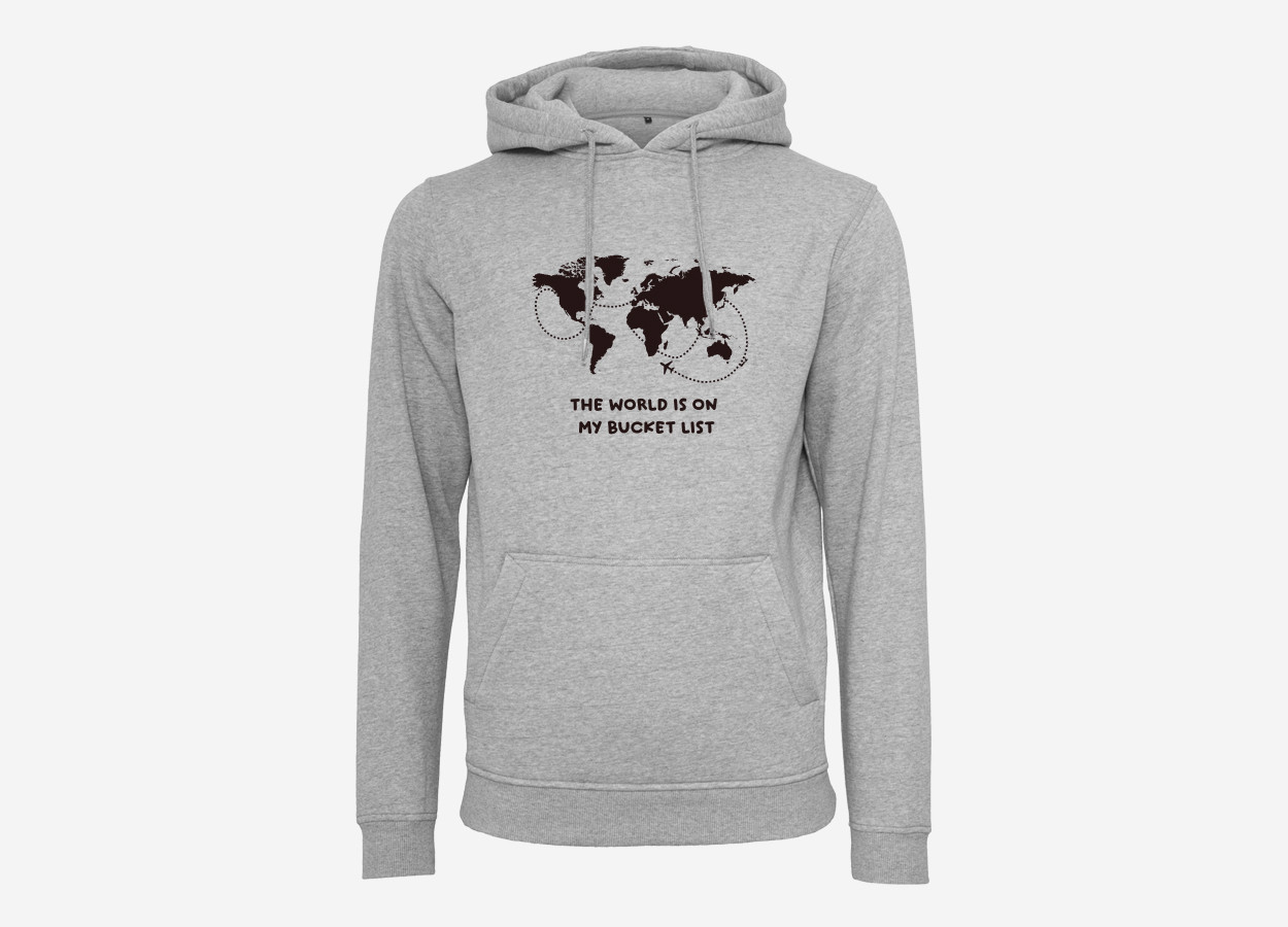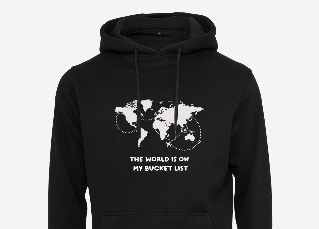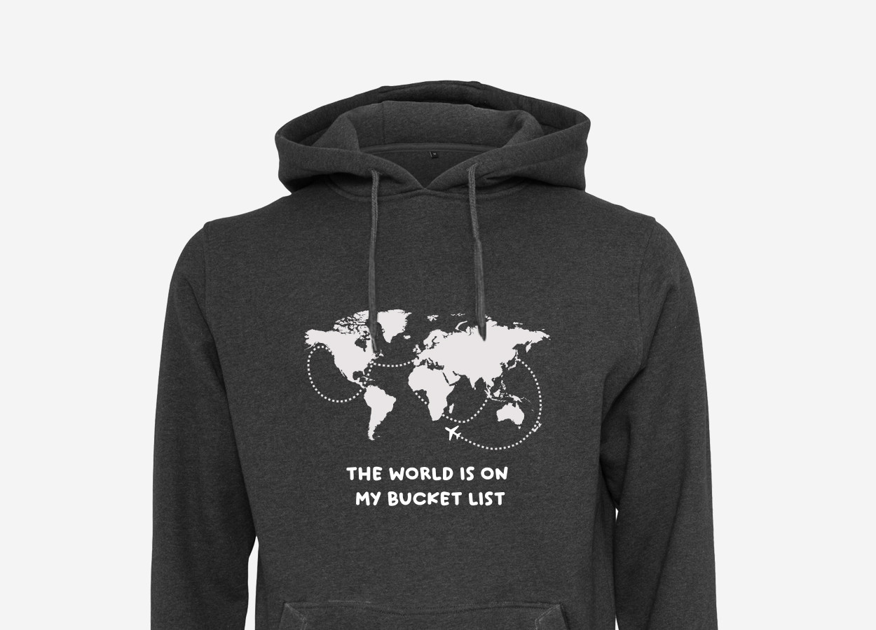 Embrace your adventurous spirit with our Global Bucket List Hoodie, designed for those who dream big and travel far. This comfortable, heavy-weight hoodie features a bold slogan: “The world is on my bucket list”, paired with a world map illustration that captures the essence of wanderlust and exploration.
