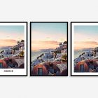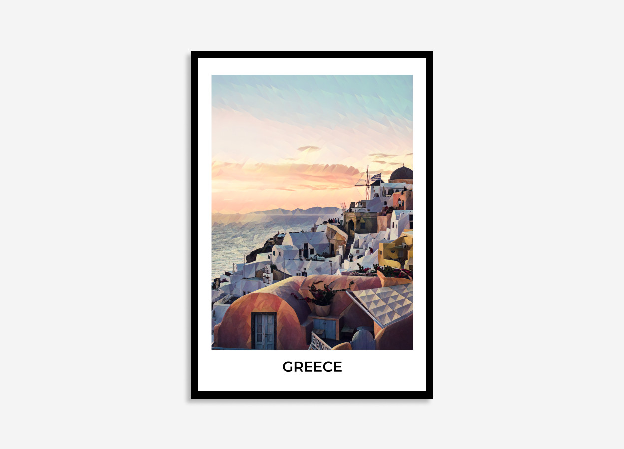 Transform your space with our stunning Greek Village Poster Geometric Travel Illustration Wall Art. This vibrant print captures the essence of a picturesque Greek coastal village at sunset; looking over a calm sea during a sunset. The art piece features iconic whitewashed buildings, stunning rooftops, and the serene beauty of the Mediterranean landscape. The geometric design adds a modern twist to this classic scene, making it a perfect blend of tradition and art.