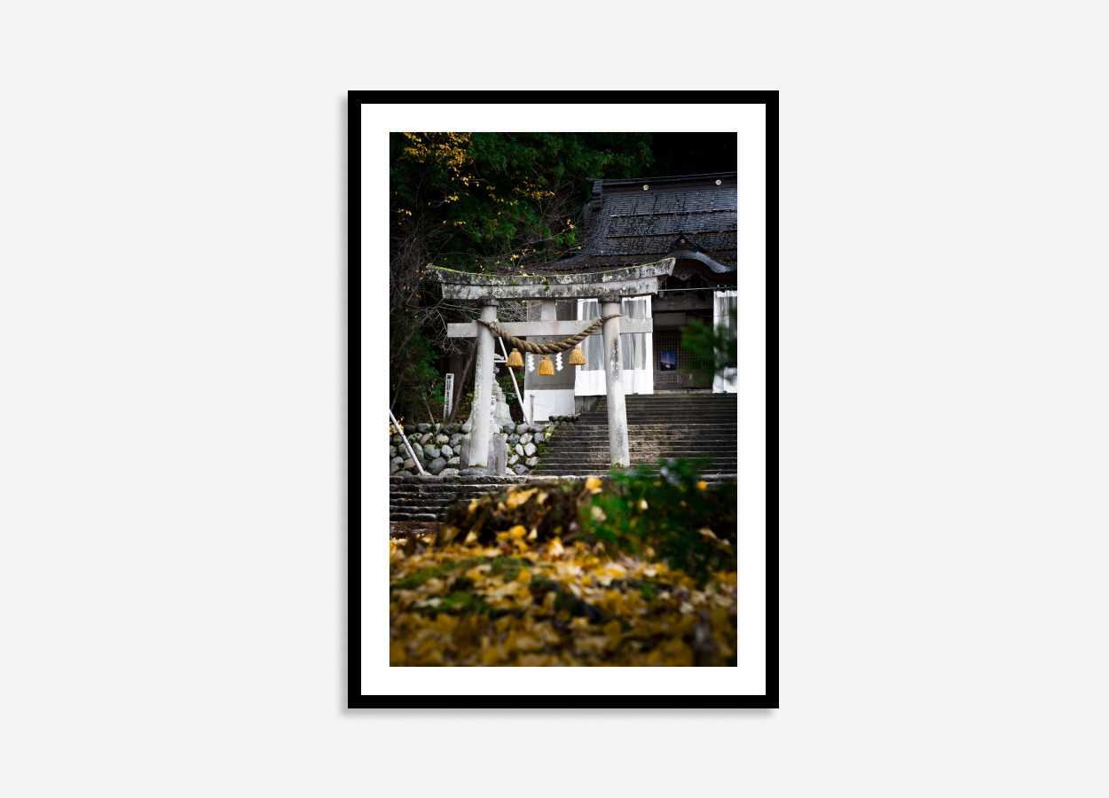 Photographed during peak autumn, this image highlights the rich textures and vibrant seasonal colors. The shallow depth of field draws the eye toward the shrine, creating a peaceful atmosphere that works beautifully in minimalist, Japandi, or nature-inspired interiors.