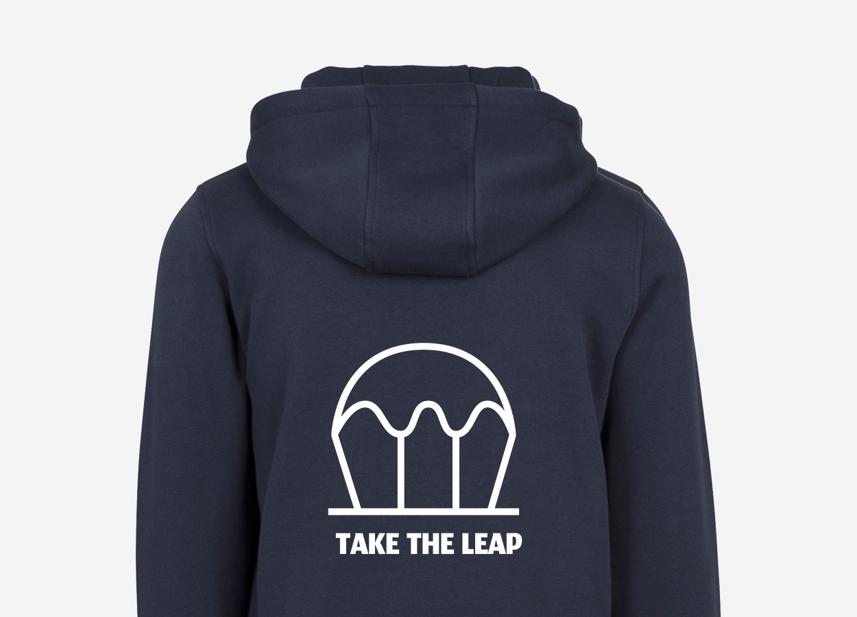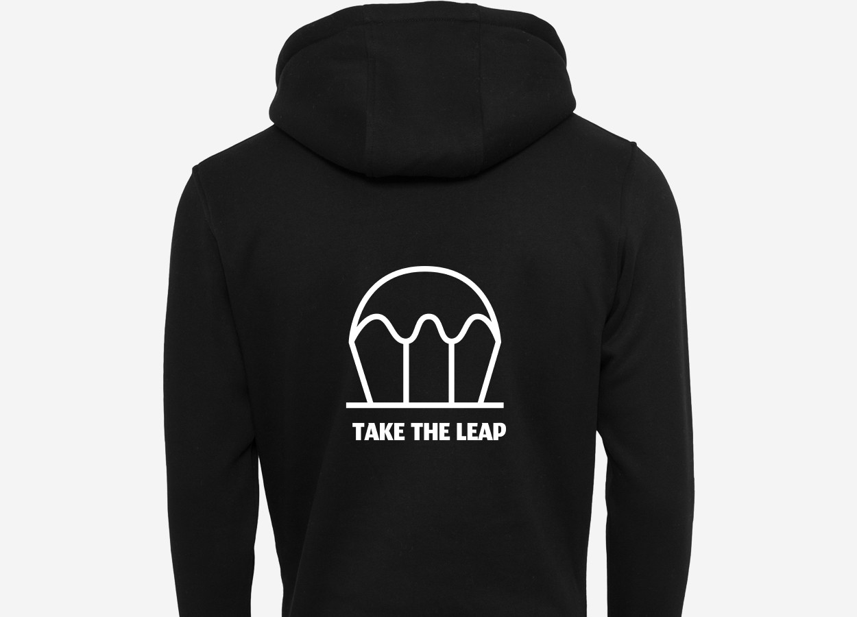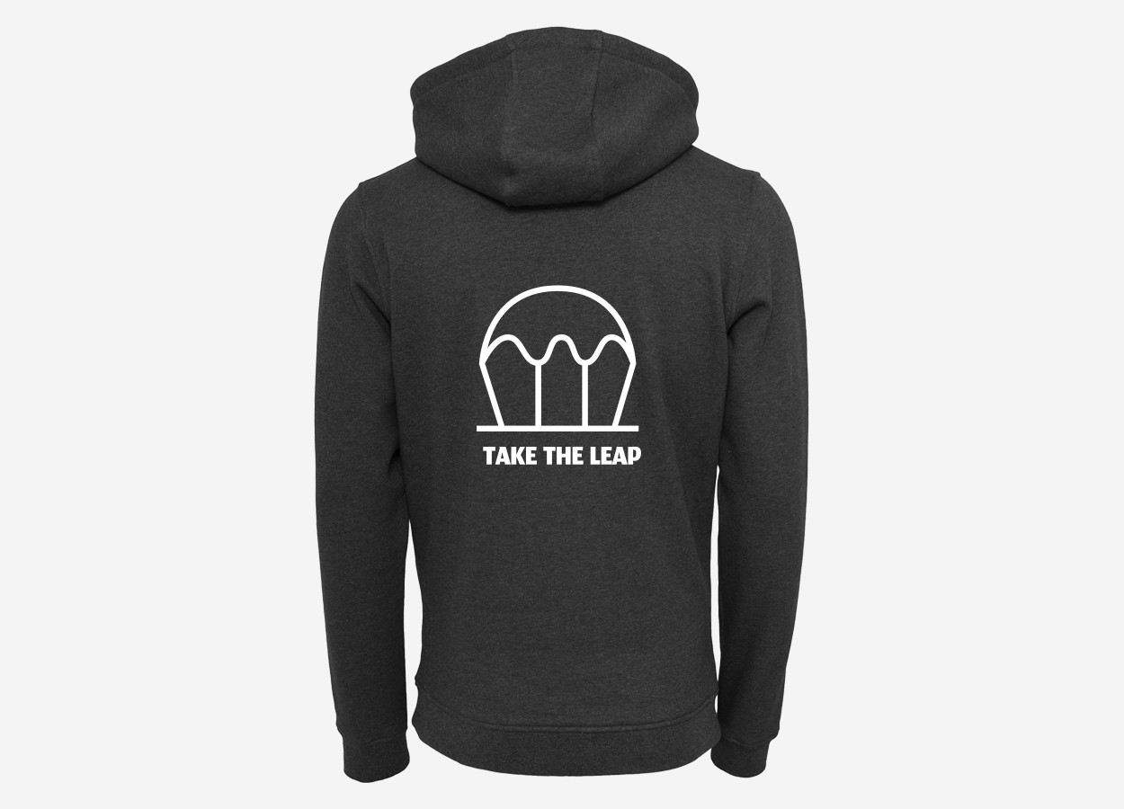 Either you can add your own text underneath the parachute or keep it with ‘Take the Leap’ - Heaviness: Heavy – double fabric hood with self-coloured cords.