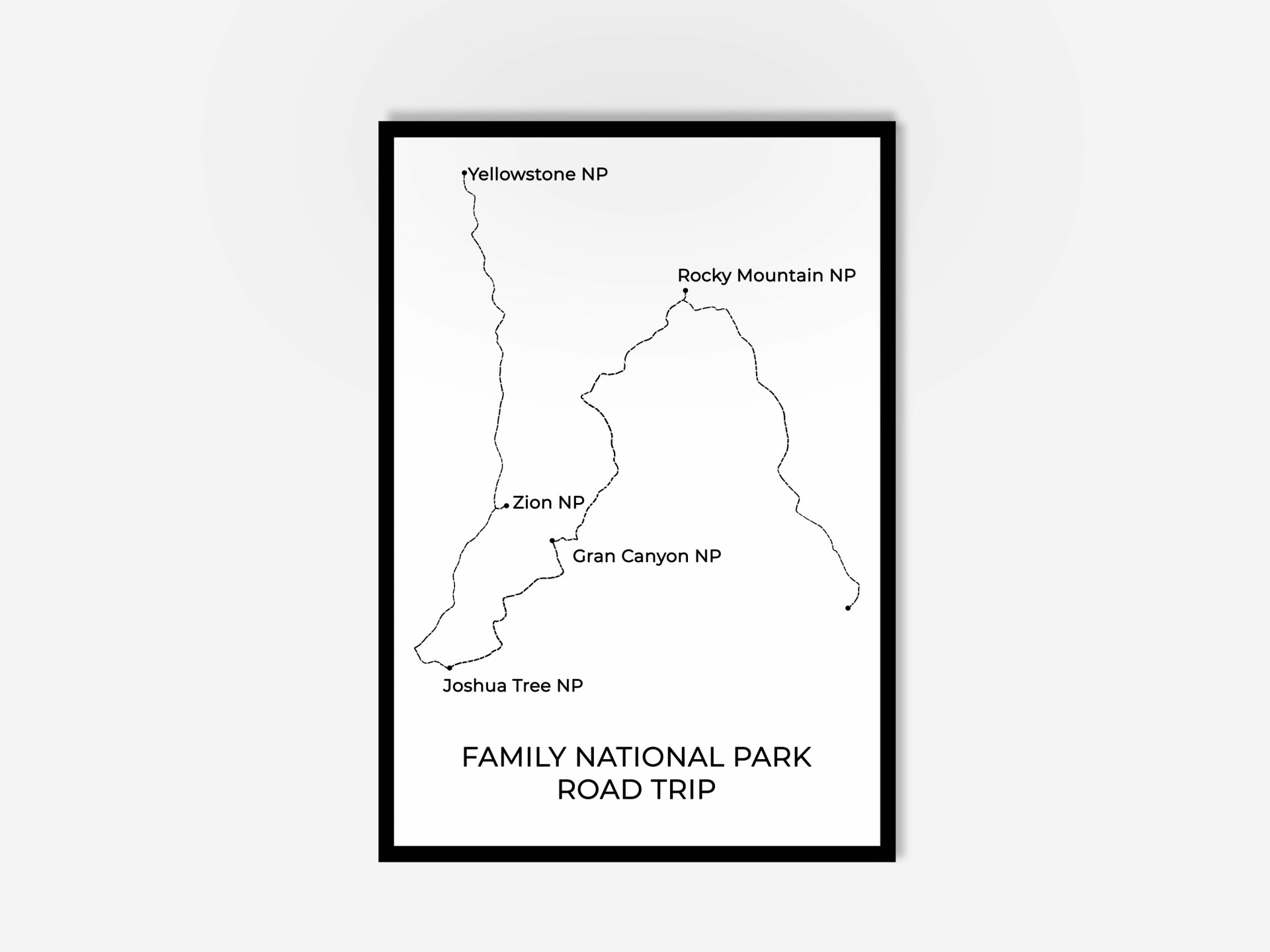 Customised National Park Map Print | Unique Wall Art for Road Trip Itinerary