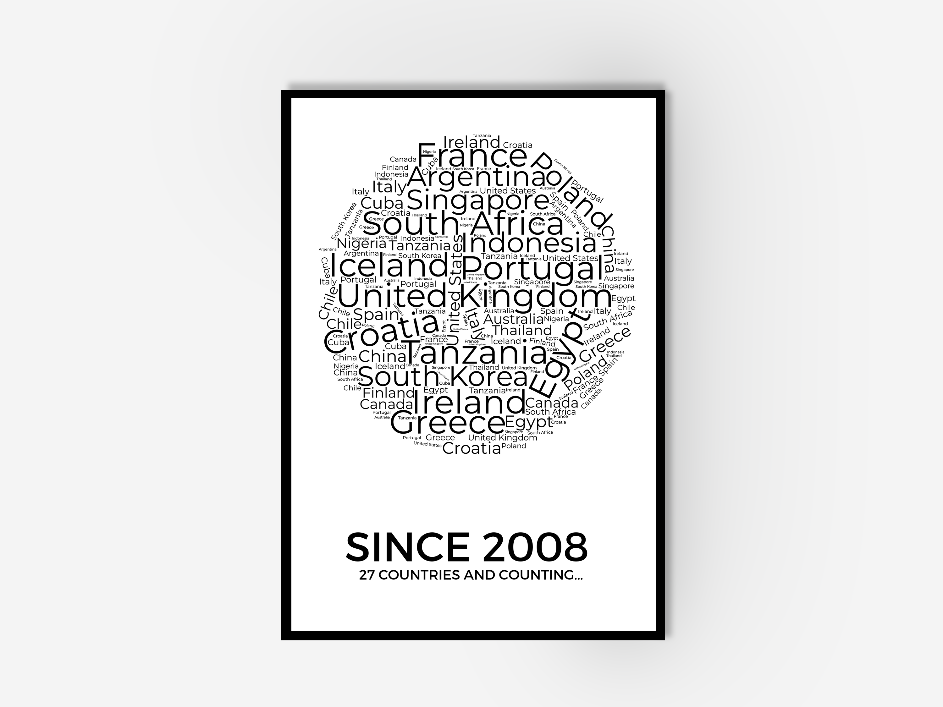 We advise that you ideally don’t have more than 50. If you have not visited many countries do not worry, your text will just be repeated. - Let us know if you would like any text below, and if so what you want the text to be.