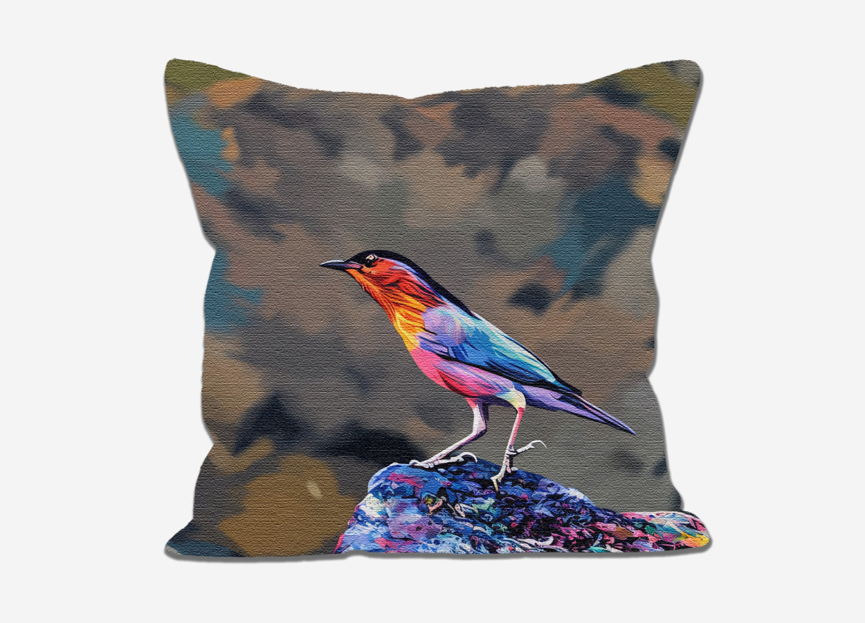 Ideal rainbow bird art decor to add accent piece onto sofas, beds, or chairs in living rooms, sunrooms, or creative spaces—perfect for birdwatchers seeking a touch of wildlife.