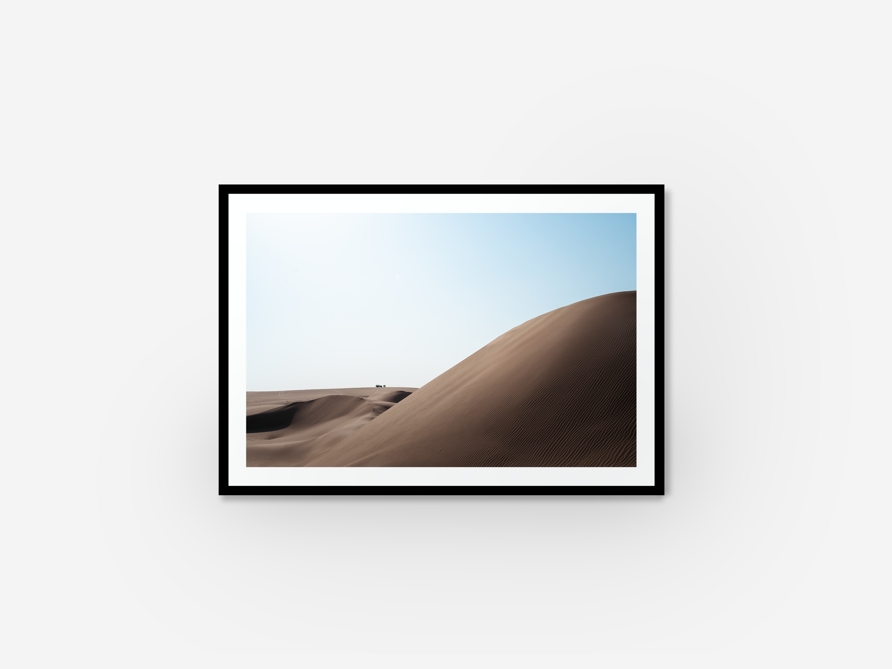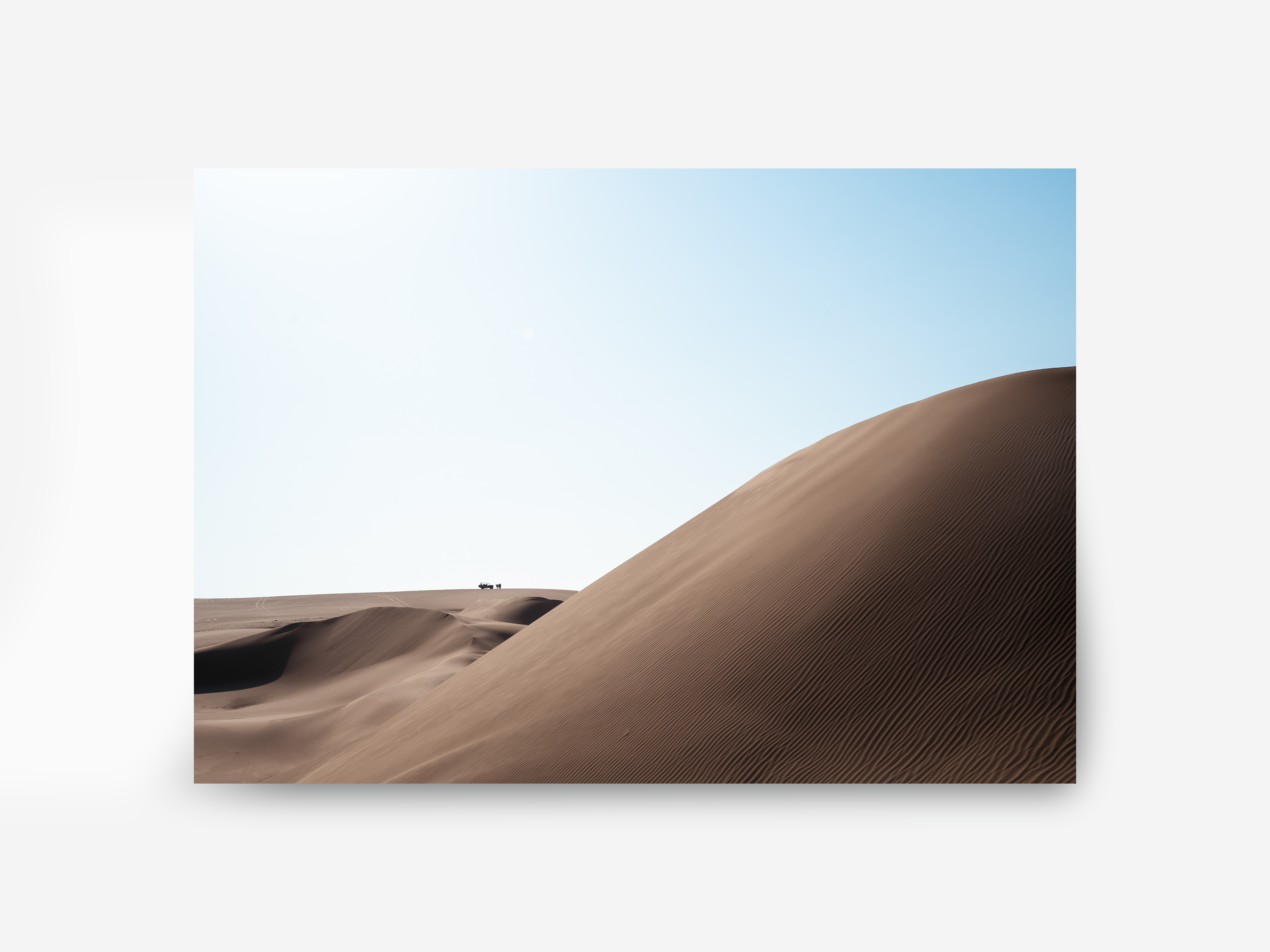 Nestled in the heart of the Sechura Desert, Huacachina is a picturesque oasis renowned for its emerald lagoon, swaying palm trees, and dramatic sand dunes. This print captures the essence of that magical light and the vastness of the desert, making it a perfect addition for lovers of nature, travel, and minimalist landscapes.