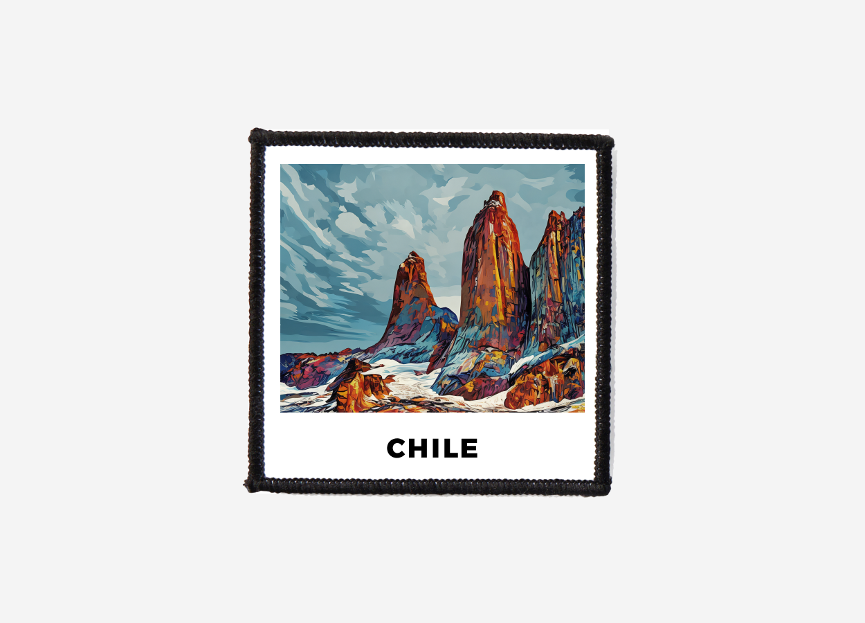 Capture the wild beauty of Patagonia with this stunning Torres del Paine Travel Patch, inspired by the breathtaking landscapes of southern Chile. This collectible patch features a bold, geometric depiction of the iconic granite towers, highlighting Chile’s most famous national park. Designed in a vibrant low-poly / Pop Art style, it uses crisp lines and a modern digital-art aesthetic to create an eye-catching, contemporary look.